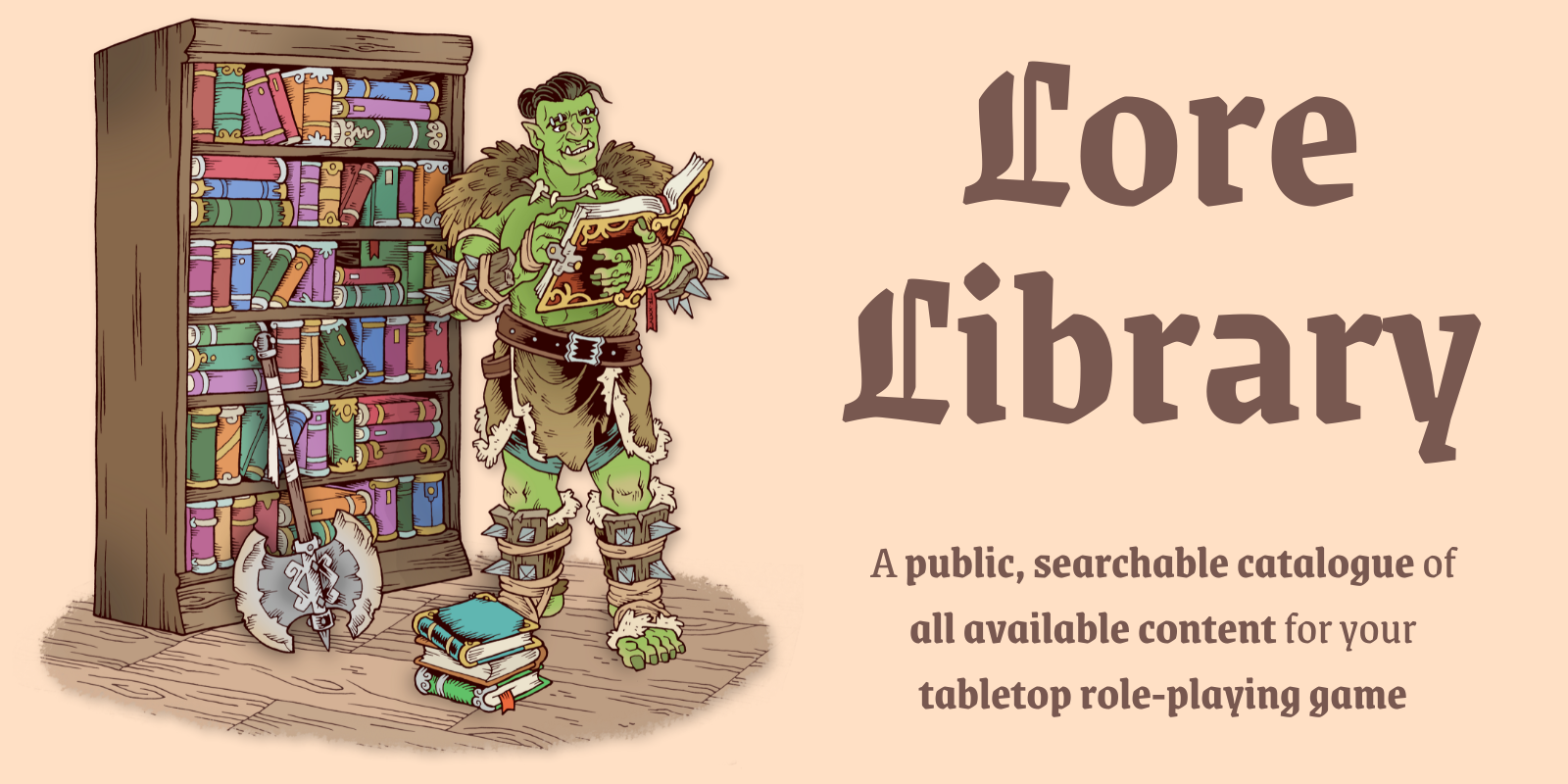 Lore Library is a service providing game creators with a robust online catalogue of all official and third-party content for their games.