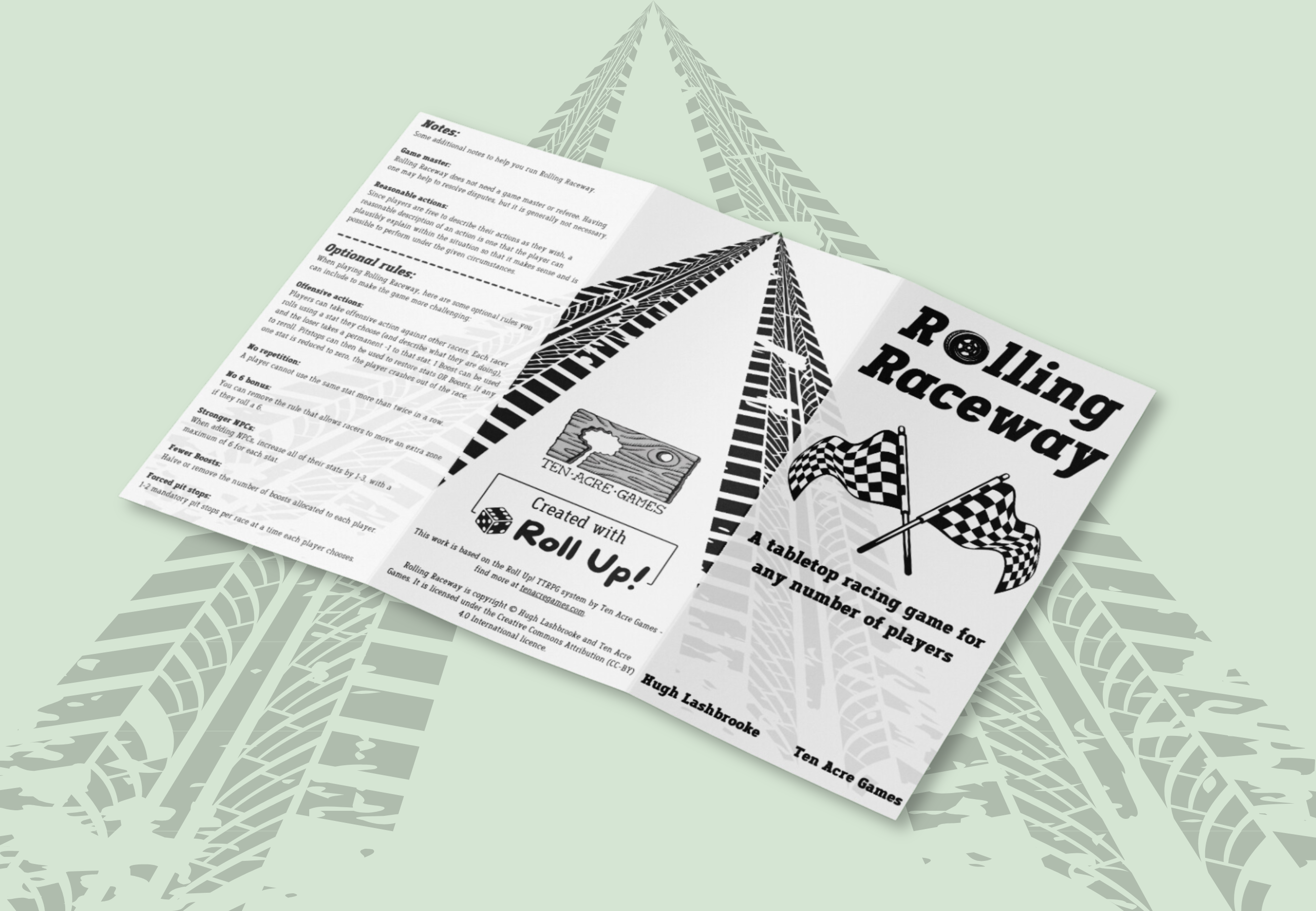 Hit the track and race your friends to the checkered flag! Or roll up a few NPCs (non-player cars) and play on your own. Either way, you’ll be starting your engines in no time – setting up your race is just a few d6 rollsย away.