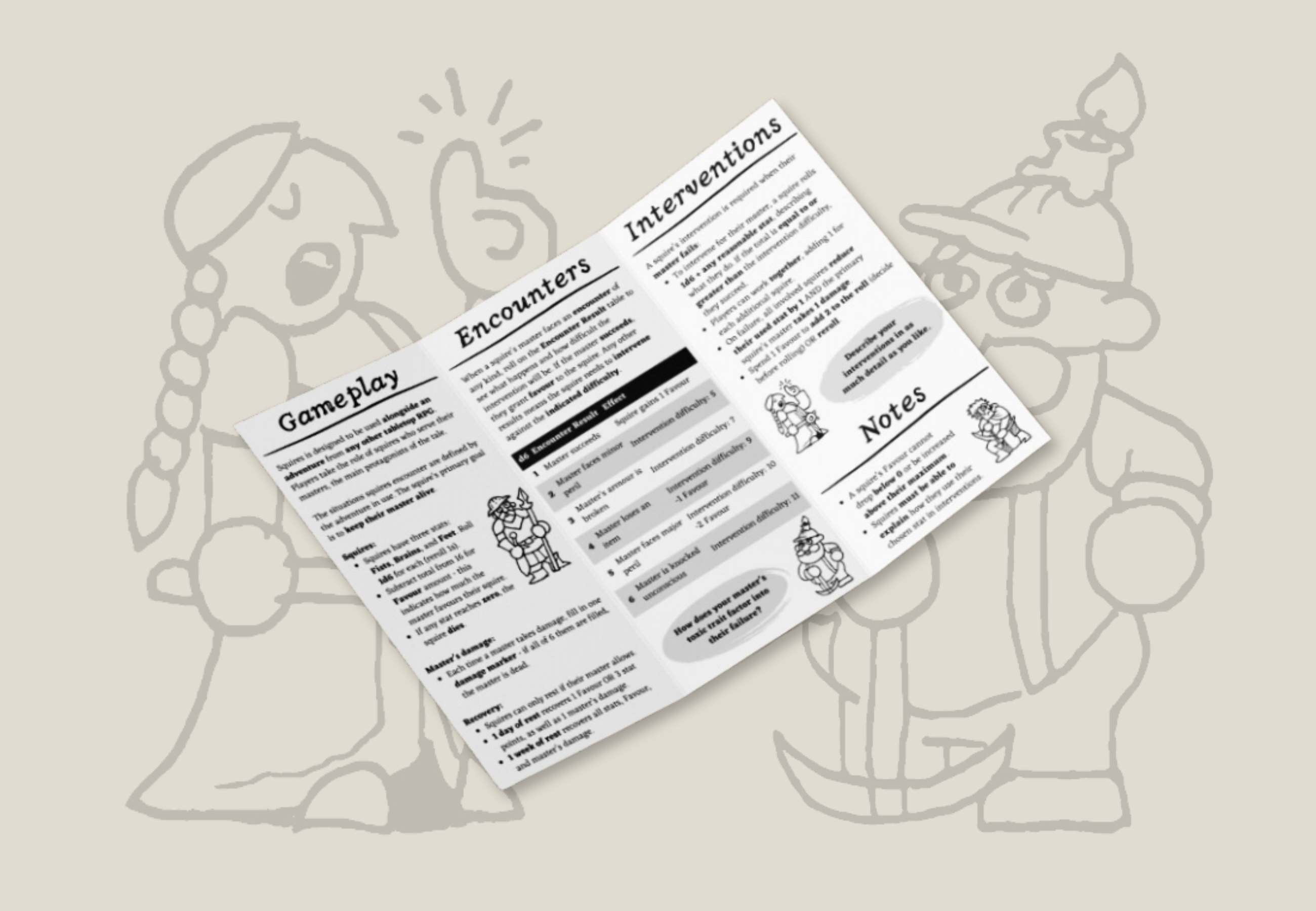 Squires is a meta-TTRPG where you recount your journey of being a squire for an inept adventurer.